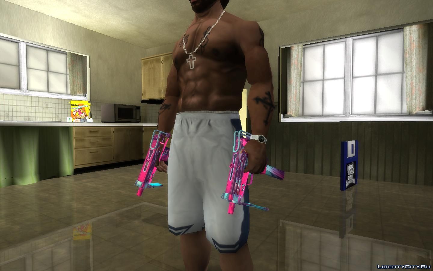 The magazine is also eye-catching, as it is painted in a gradient combo of violet and blue with black dots on top. Other parts of the gun are either solid pink or solid teal. Overall, this is one of the most aesthetically pleasing skins.