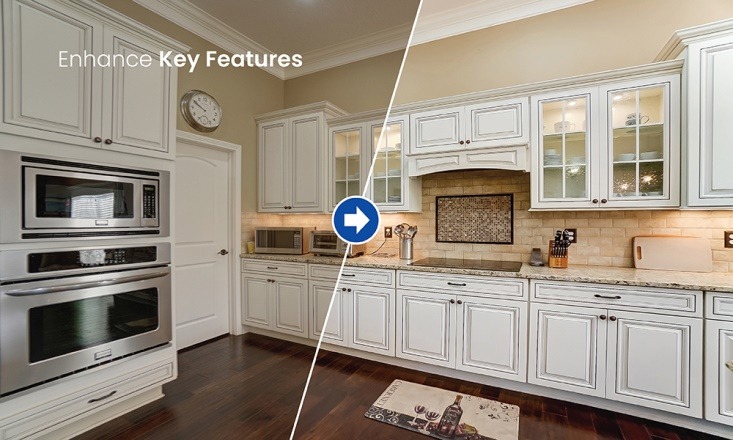 - Focus Adjustment: Blurs background elements to keep the focus on the kitchen’s best features.