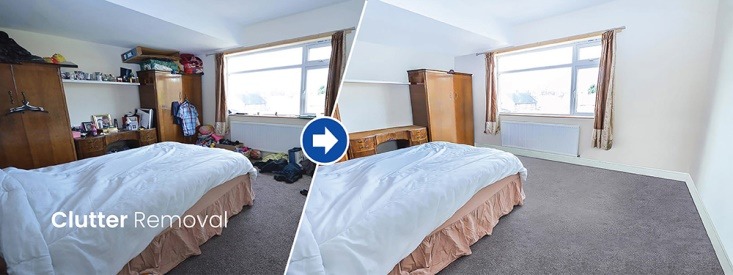 - Clone Stamp Tool: Removes clutter, such as stray magazines and cables, ensuring a clean and organized space.