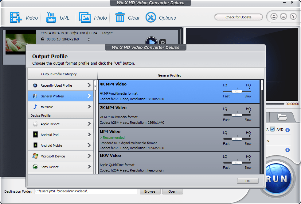 Till now, most of the video converters are able to convert 4K videos, including the free ones. However, not all the programs support the HEVC, AV1 codec of 4K videos. One of the 4K converters that is free and equipped with robust video and audio codecs is WinX Video Converter. As a result of supporting over 400 types of codecs, it is capable of dealing with videos in HEVC, AV1, VP9, MP4, MKV, H.264, MOV, WMV, and more.