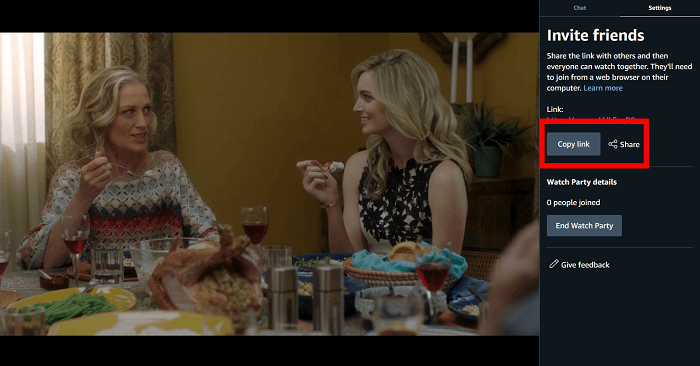 This way, you can invite up to 100 people at a time. However, they all should be an active Amazon Prime subscriber. Once they click on the link, they can start watching the TV show or movie on their desktop browsers.