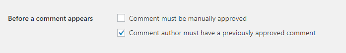 To enable the setting, go to Settings > Discussion > Before a comment appears > check ‘Comment must be manually approved’ and/or ‘Comment author must have a previously approved comment’ box(es).