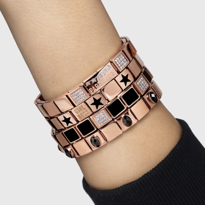 Choose a stainless-steel rose gold plated plaque necklace. You can use a 9k rose gold plate to get a luxurious vibe. Finish it with an engraved pendant written in the alphabet or a sign of the special day.