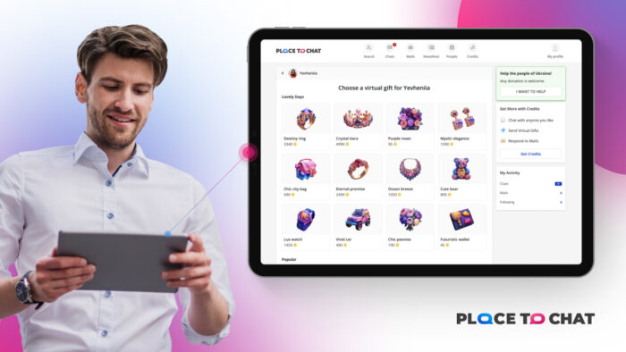 Starting new conversations on Placetochat is easy, but more content-rich chats with features like photos or stickers require payments inside the platform. Yet, when you enter this communication site, you get 20 free credits and can try some of the paid options before deciding to pay for them.
