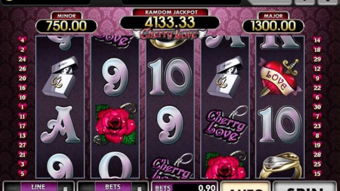 Along with regular 9, 10, J, Q, K, and A symbols, Cherry Love also introduces a half nude model that seems to be ready to strip her lingerie off when a payline is struck. However, she isn’t the only attraction to draw one’s attention, as cherries are the scatters, which can award the user with multiplications or even Free Spins.