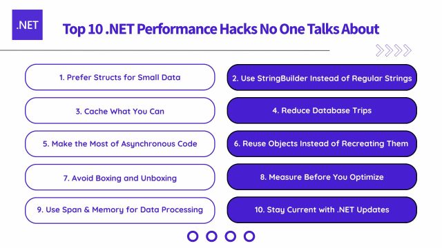 Read below a detailed breakdown of the ten key performance hacks that have helped .NET developers optimize and scale their applications’ performance.