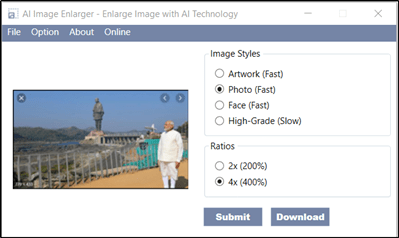 After adjusting the picture resolution with an AI enhancer, you can click on download or preview your image.