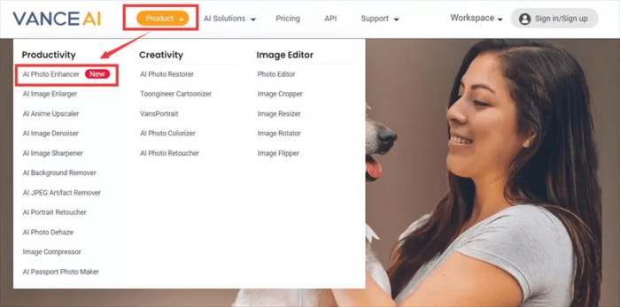 Click on the product page from the main site. From there, go to Vance AI Photo Enhancer.
