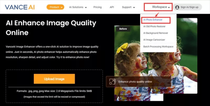 Step#1 Go to Vance AI Photo Enhancer