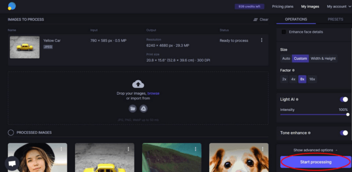 Another superb AI tool is Let’s Enhance, increasing your image resolution with a single click. This image size enlarger has the best innovative features to automatically enhance your picture quality and resolution. In addition, this AI enlarger’s fixed pixelation and blur feature is no more than a treat to the users.