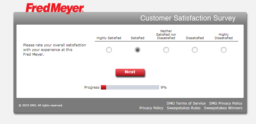 Overall Satisfaction – www.krogerfeedback.com - There are pages with multiple radio button answers, select the most appropriate answer per question. The questions depend mostly on what you answered on the type of items you bought on your store visit during the first part of the survey. The answers for each question will be independent of each other. This means you can give the freshness of the products a high mark but the friendliness a low score depending on your experience.