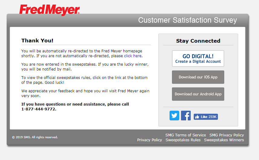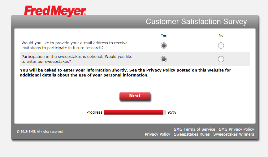 Optional Questions – www.krogerfeedback.com - You will be then asked if you want to participate in the sweepstakes and whether you would like to be contacted for future surveys. Answer accordingly.